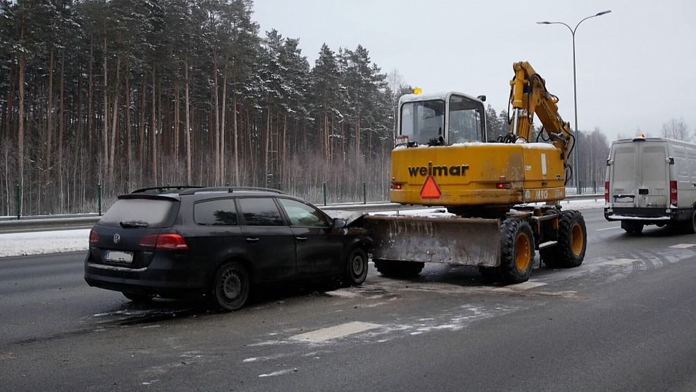 ДТП на Юрмальском шоссе: Volkswagen врезался в экскаватор, один из пострадавших - ребенок