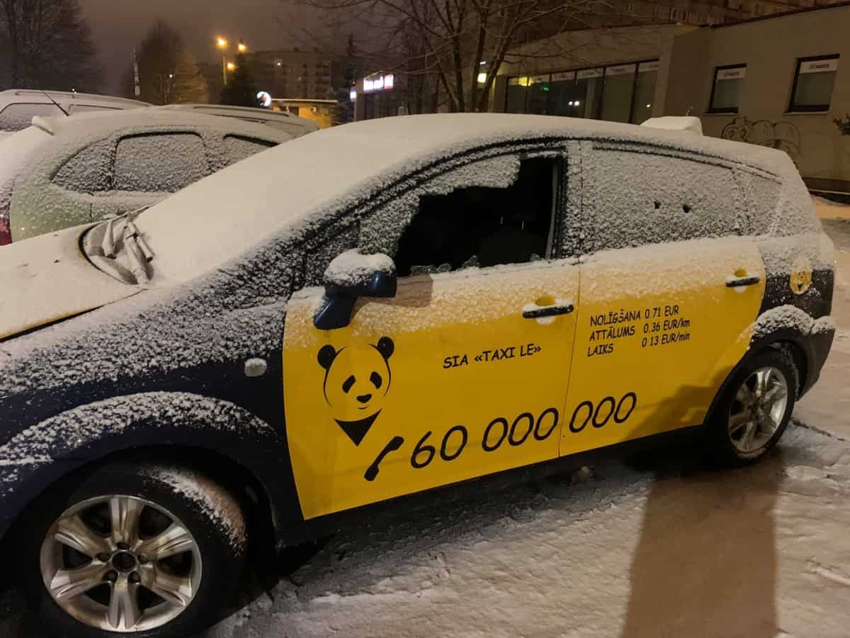 ФОТО: в Плявниеки неизвестные обстреляли и написали оскорбление на такси