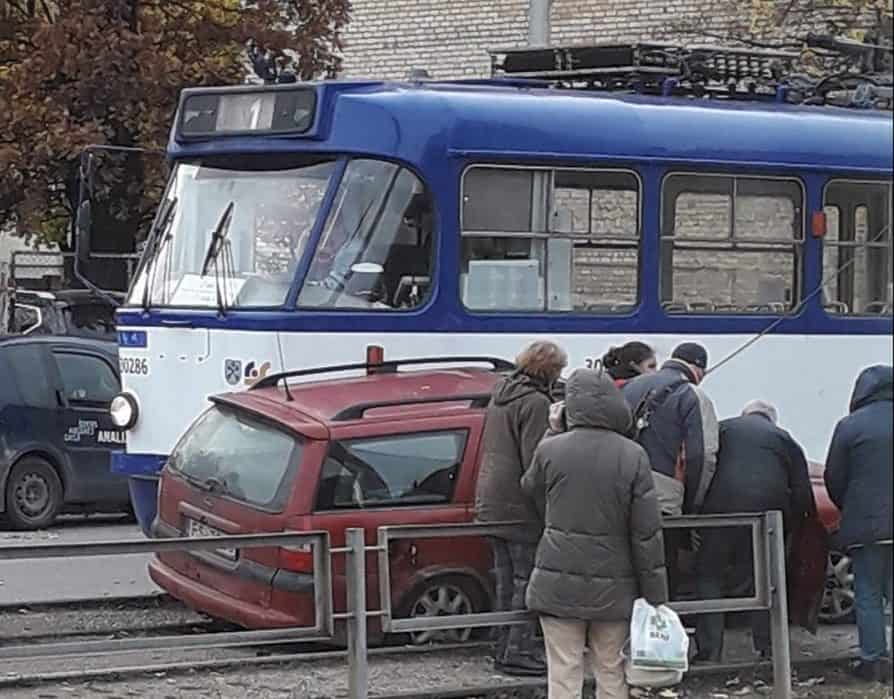 ФОТО: в Риге столкнулись «легковушка» и трамвай Rīgas satiksme