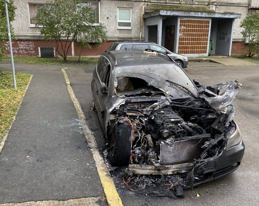 ФОТО: в Пурвциемсе прямо во дворе сгорел автомобиль