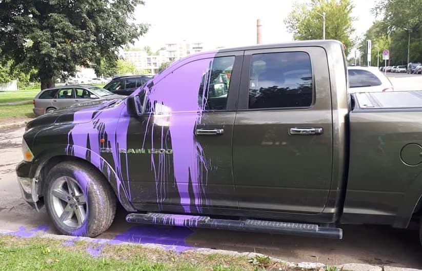 Кого-то обидел? В Риге машину облили краской и прокололи шины