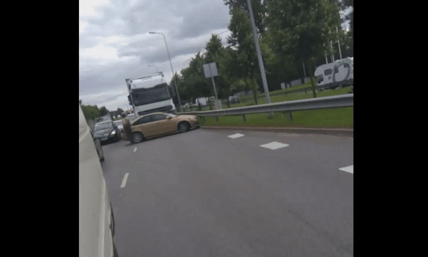 ВИДЕО: в Риге в результате ДТП автомобиль перегородил полосу движения