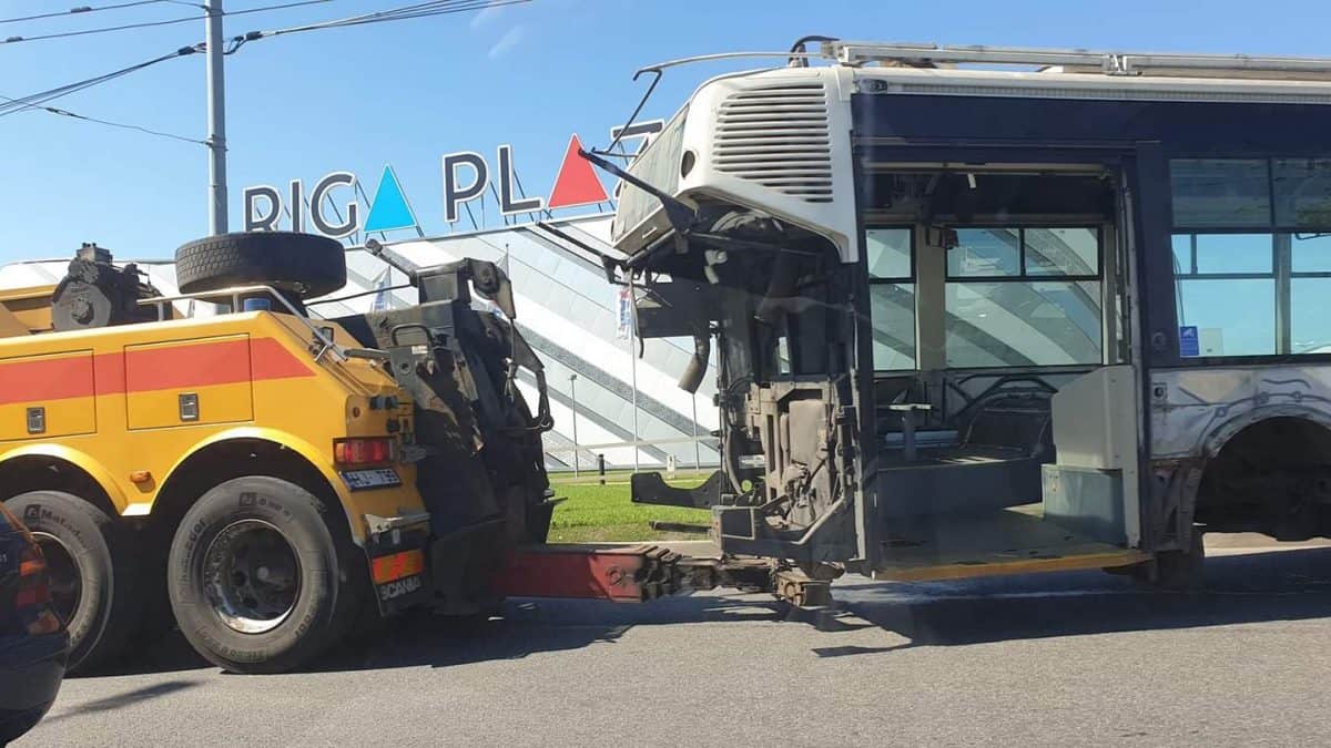 Дорожная хроника: троллейбус перегородил Мукусалас, столкновение легковушек на Илукстес, в Олайне «паровоз» из машин