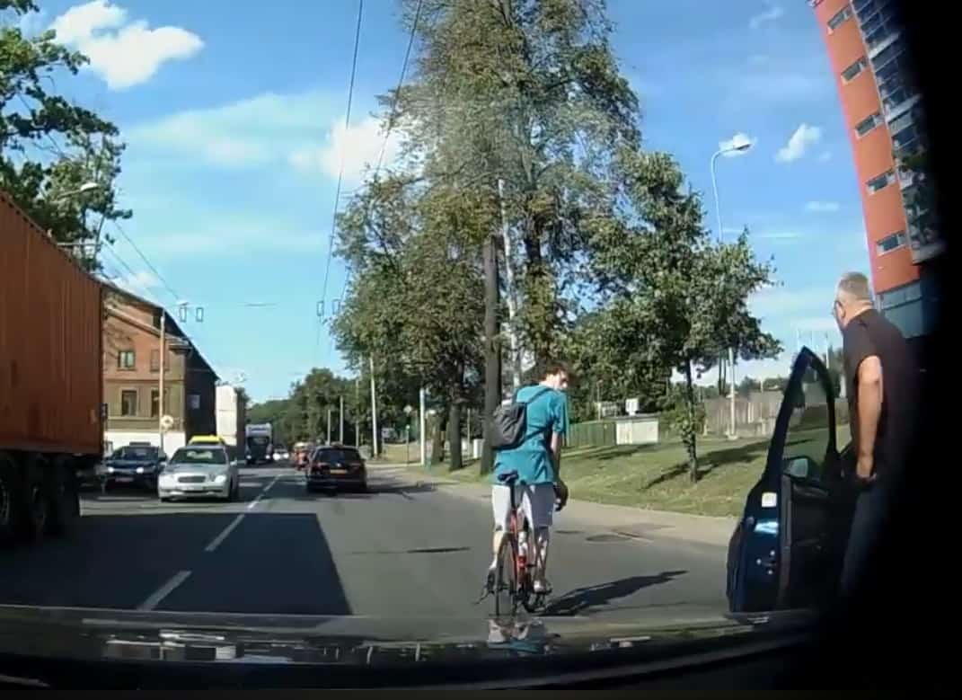ВИДЕО: водитель в Риге «проучил» незадачливого велосипедиста