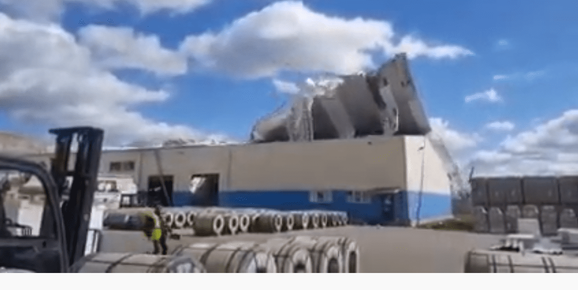 ВИДЕО: ветер сорвал крышу с заводского склада в Добеле