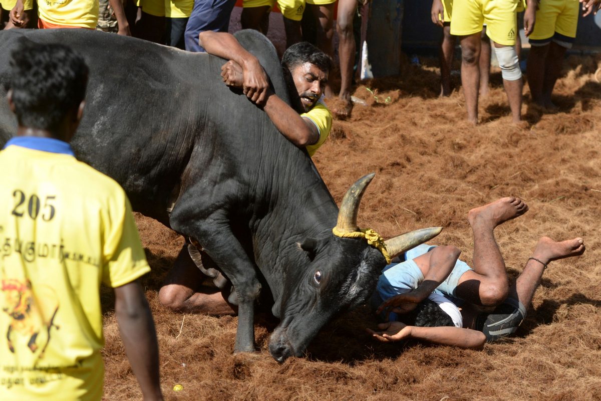 Человек погиб и 66 ранены в состязании по укрощению быков в Индии
