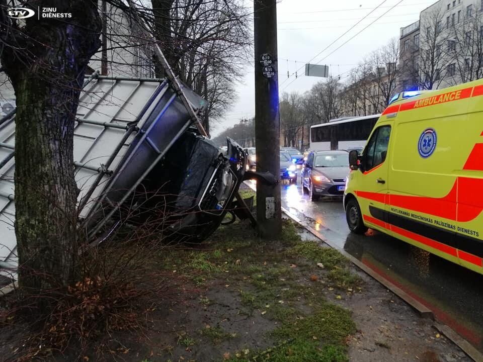 В Риге водитель врезался на машине CityBee в грузовик и скрылся с места ЧП