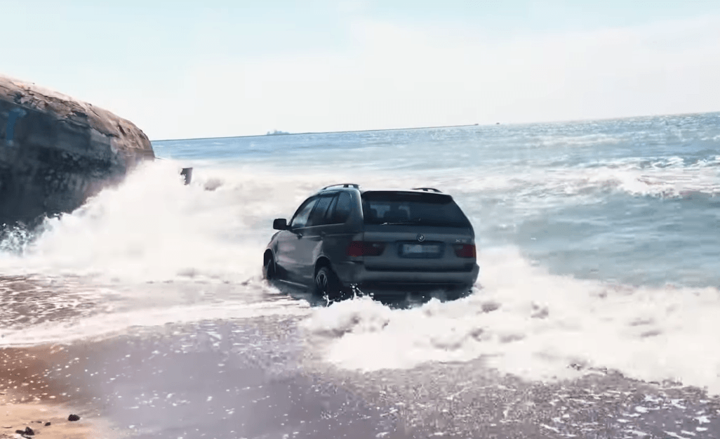 ВИДЕО: в Лиепае BMW X5 «искупался» в море