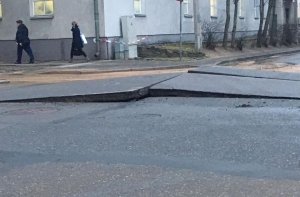 В Риге из-за поврежденного трубопровода поднялся асфальт