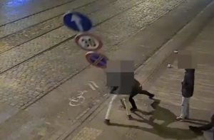 В Риге пьяные туристы сломали дорожный знак и отнесли его в парк