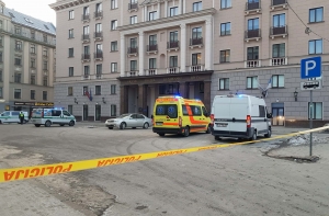 Оцеплена территория перед отелем Kempinski в Риге