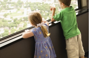 Маленькие дети поздно вечером отправились гулять, спрыгнув во двор через окно