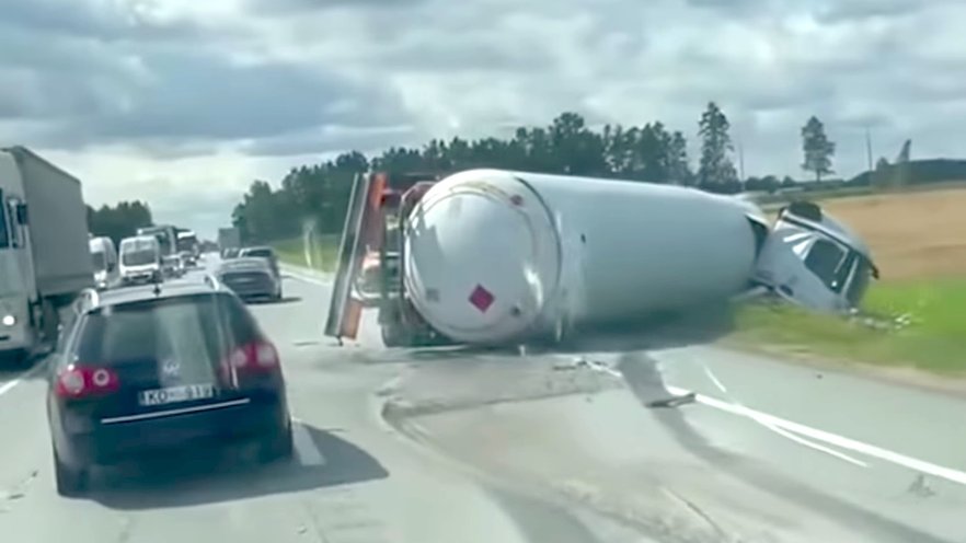 В Иецавской волости перевернулся газовоз - движение перекрыто