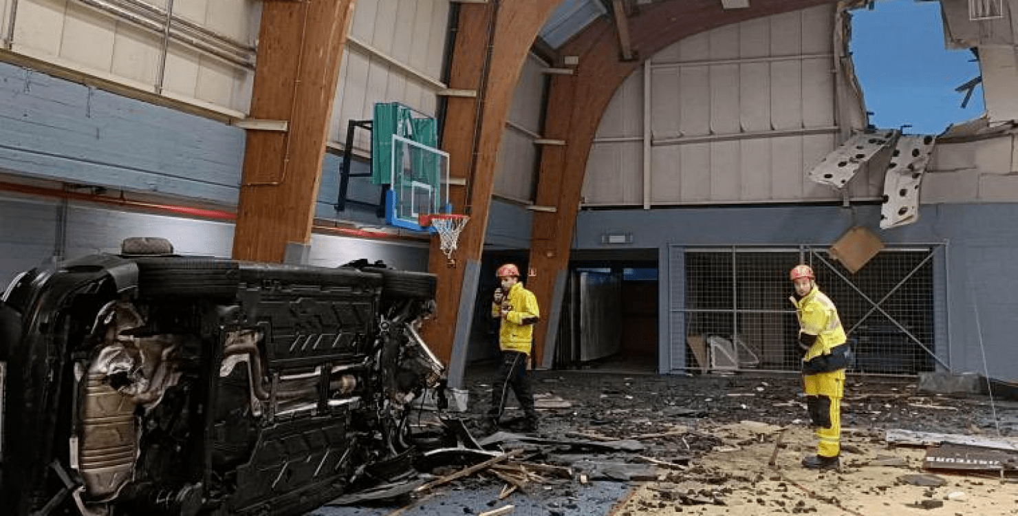 В Бельгии футболист на машине взлетел на воздух и проломил стену спортзала