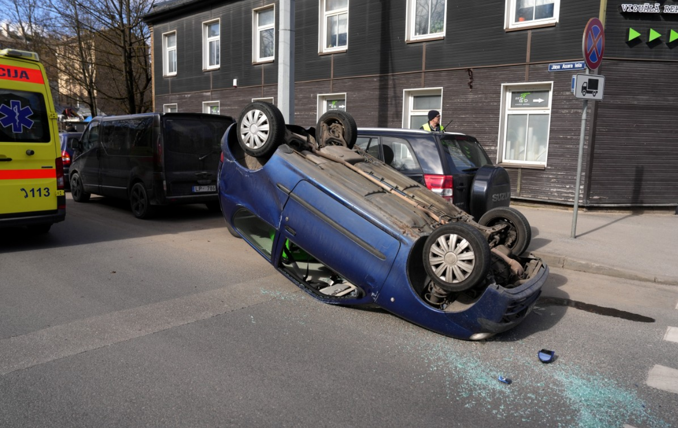 В результате ДТП в Риге одна из машин перевернулась на крышу