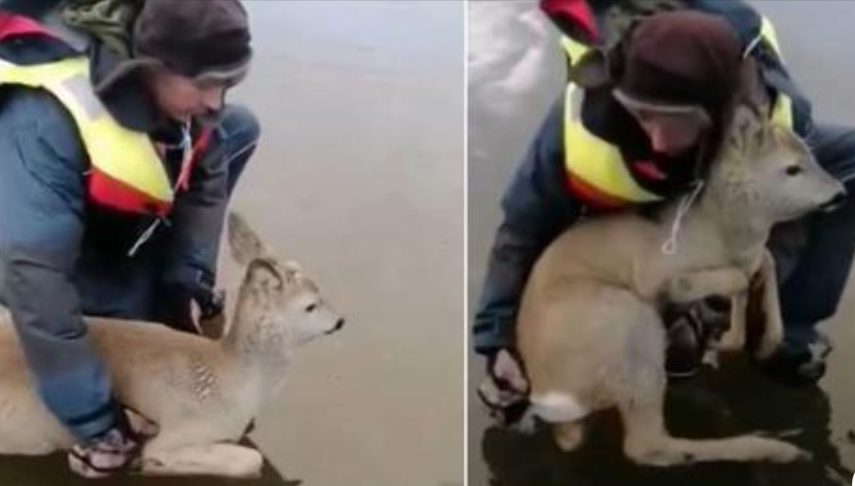 Вороны уже начали атаковать. Косуля бы погибла, но литовские рыбаки ее спасли