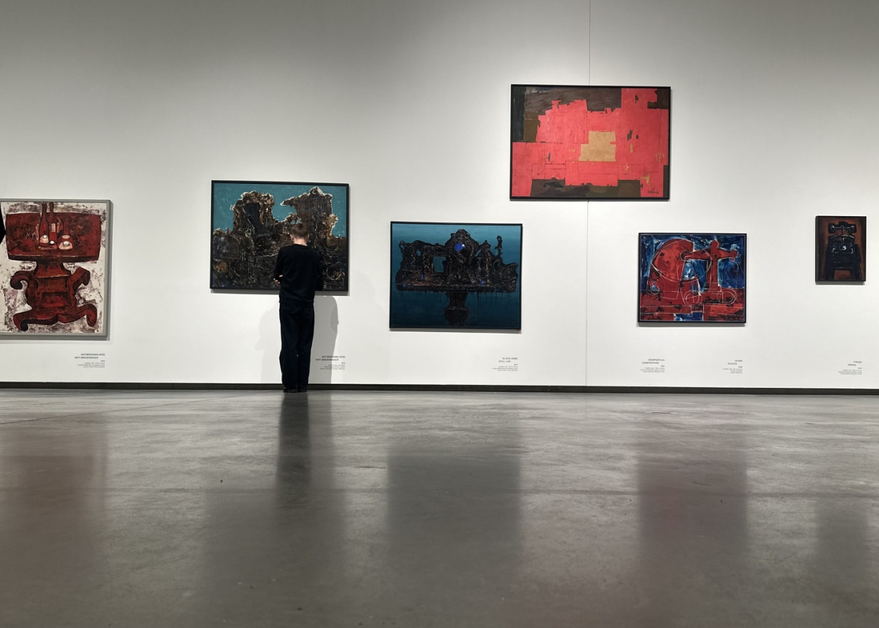 Ранние работы 1950-х годов, представленные в экспозиции, демонстрируют не только идеологическую корректность, но и высокий уровень профессионального мастерства. Однако переломным моментом становится конец 1950-х - начало 1960-х годов, когда контакт с западным искусством и реальным модернизмом радикально расширяет его визуальный и интеллектуальный горизонт. Картина «Кузнецы» (1962), представленная на выставке, справедливо воспринимается как рубежная: сохраняя фигуративную основу и социально допустимый сюжет, она демонстрирует резкий сдвиг в сторону экспрессивного письма, деформации формы и усиленной материальности живописной поверхности. Здесь уже очевиден отказ от иллюстративности в пользу высказывания.