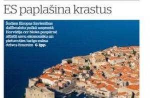 Газета Diena пишет о расширении ЕС на Хорватию. И рассказывает об этой стране. На второй странице Атис Климовичс призывает серьёзно отнестись к критике латвийской армии эстонским генералом, который знает, что говорит. Гвоздь номера - интервью с депутатом Рижской думы Байбой Брокой, лидером фракции Национального объединения. Которая жалуется на плохую атмосферу и ауру Рижской думы. И рассказывает об опасностях для латышского языка. Подробнее об этом в новостях. Также сообщают, что бюджеты министерств в следующем году пополнятся на 592 миллиона латов.