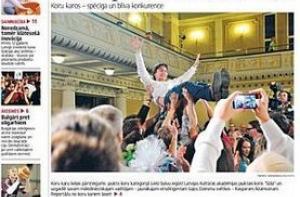 А газета Latvijas Avīze рассказывает об официальном открытии XXV Праздника песни и XV Праздника танца, всеобщих латышских. И о состязании хоров, с таблицей результатов. Оказывается, в жюри соревнований, помимо латвийских, были и специалисты из Западной Европы. На третьей странице писательница Моника Зиле указывает, что по потреблению алкоголя молодежью и подростками Латвия занимает третье место в Европе, приводит печальную статистику детских отравлений алкоголем и намекает, что об этом еще Блауманис писал. В зарубежных новостях сообщают, что Россия усиливает свое военное присутствие на Кипре. А ещё есть интервью с президентом ГАО Latvijas dzelzceļš Угисом Магонисом. Который рассказывает о грузовых перевозках, электрификации и даже о строительстве новой железной дороги Скривери- Крустпилс. И вообще хвалится успехами и рекордами.