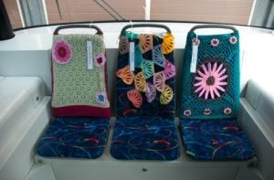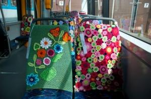 По улицам Риги с сегодняшнего дня будет курсировать необычный трамвай – сидения его кресел украшены вязаными крючком чехлами. Он будет ходить по маршруту 11 трамвая. Секции трамвая посвящены разным темам: знакам, стихии, любви и цветам.