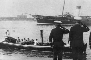 3 июля 1910 года (по старому стилю) в 2 часа дня в рижскую гавань вошла императорская яхта «Штандарт». «В 2 час. 30 мин. Государь Император вышел на пристань, принял от депутации города хлеб-соль, а также должностных лиц, представлявшихся Его Императорскому Величеству. В 3 час. 50 мин. Государь Император посетил кафедральный собор и дом «Черноголовых». В 6 час. 45 мин. Государь Император возвратился на яхту. По пути следования шпалерами стояли воспитанники учебных заведений, пожарные дружины и члены разных обществ. Народу масса; порядок образцовый. Государь следовал в коляске с министром двора и с премьер-министром Столыпиным» - писала газета «Утро России».