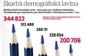 Газета Diena пишет о том, что скоро некого будет учить в вузах - количество школьников драматически сокращается и ничто не обещает улучшения ситуации. Приводится мрачная статистика, работодатели готовятся к нехватке специалистов, сообщает газета. На второй странице карикатурист смеется над рухнувшей российской ракетой-носителем и православной церковью, Рядом Атис Климович славит Праздник песни, напоминая, что советская власть его запрещала. Есть также интервью с бывшем сотрудником БЗС Арнолдсом Бабрисом, который рассказывает о зависимости наших спецслужб от американских. Еще пишут о безопасности купальщиков, указывая, что пляж возле Вантового моста в Риге - неофициальный, поэтому спасение утопающих там - дело рук самих утопающих. Рассказывают и об оппозиции в Рижской думе, которая под видом заботы от налогоплательщиках подняла вопрос о сокращении числа заместителей начальников департаментов.