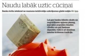Газета Diena пишет, что из-за банковского кризиса немало жителей сбережения хранят дома, это многие тысячи латов. Вот, например, Раймондс Паулс банкам больше не верит. Но и среди депутатов Сейма есть такие, указывает газета. О причинах подобного недоверия рассуждают психологи и психотерапевты. На второй странице художник изобразил латыша, стоящего перед граблями, под которыми подразумевается новая партия Репше. Другие партии представлены косой, лопатой, вилами и, конечно, балалайкой. Еще в номере пишут о неписанных законах рисжких таксистов и о войнах индивидуальных таксистов с фирменными. Жертвой чего недавно стал министр образования. Кроме того, газета продолжает борьбу с торговлей так называемыми легальными наркотиками. И разбирается, кому принадлежал киоск в привокзальном тоннеле в Риге, где ими торговали. Торговля велась с разрешения Рижской думы, установила газета.