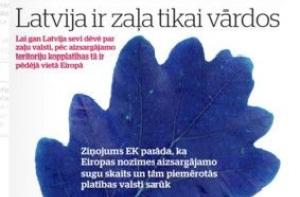 Газета Diena пишет, что Латвия зеленое государство только на словах, а на деле общая площадь охраняемых природных территорий у нас самая маленькая в Европе. Число охраняемых растений и животных снижается, леса вырубается, поля зарастают - рисует газета страшную картину. На второй странице - карикатура на российского президента Путина, на третьей - небольшое интервью с новым председателем Партии реформ Эдмундсом Демитерсом, который опять заявляет, что не собирается сотрудничать с ЦС. Еще в номере есть интервью с финансовым директором «Латвэнерго», а далее пытаются разобраться, кто виноват в пожаре Рижского замка. Уж не строители ли это?