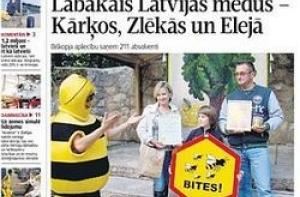 А газета Latvijas Avīze пишет о традиционном конкурсе на самый лучший латвийский мёд, который определялся методом дегустации и тайного голосования. Первое место занял мёд из волости Картю Валкского уезда, на втором месте - из Вентспилсского уезда, на третьем - из Элеи Елгавского уезда. 211 выпускников курсов пчеловодов получили удостоверения, а вообще в этом году в первый раз пчеловоды получили государственные субсидии, сообщил председатель Общества пчеловодов Армандс Краузе. На второй странице обозреватель Антоневич возмущается празднованием юбилея дома Романовых и утверждает, что они никакого отношения к Латвии не имеют. А обозревательница Либека приводит статистические данные о населении Латвии, особо подчеркивая, что латыши уезжают, а русские приезжают. И среди мигрантов 23 процента - из России. Еще пишут об археологической находке в Новгороде - в одной из берестяных грамот 12 века упоминаются ливы! Речь идёт о торговле с ливским купцом.