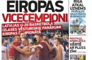 Газета Diena пишет об исторической победе юных латвийских баскетболистов - серебряной медали на Чемпионате Европы. Последний раз подобное было в 1939 году, напоминает газета. На второй странице карикатурист Буравцовс рисует, а обозреватель Точс пишет на тему дележа госбюджета. Гвоздь номера - беседа с президентом Андрисом Берзиньшем, который рассказывает о двух годах своего президентства. А также, с присущей ему осторожностью и уклончивостью - о политических партиях. А также про евро и отношения с Россией. Потом рассказывают о дорогом удовольствии - поездке на велорикше по Риге и вообще о новых строгих правилах для этого вида транспорта, но отрасль нуждается и в других улучшениях, пишет газета. Получено 90 разрешений, 42 водителя оштрафованы.