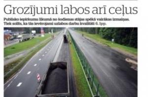Газета Diena пишет о поправках к закону о публичных закупках. И надеется, что изменения улучшат качество дорог. Газета объясняет суть важнейших поправок. На второй странице карикатурист изобразил грузин с большими носами и восстановленный памятник Сталину в Гори. На второй странице Гиртс Каспаранс утверждает, что останься в Латвии промышленность советского времени, она не смогла бы конкурировать с Западом. Пример остававшегося динозавра - «Лиепайского металлурга» это подтверждает. Далее ничего хорошего не обещают сельским школам, на них денег не хватит. И рассказывают о планах агитационной кампании за введение евро. Она охватит все регионы, людей всех национальностей и социальных групп. Будут отдельные информационные материалы для пенсионеров. Переход на евро будет рекламироваться как естественная фаза развития государства, под девизом «Латвия растет», сообщает газета.