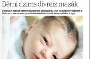 Газета Diena пишет о том, что хотя статистика и обнаружила небольшое повышение рождаемости, но прогноз на будущее неутешителен - число мам и младенцев сокращается. За десять лет рождаемость может снизиться вдвое, предупреждают демографы. На второй странице Атис Климович приветствует конец режимов «сильной руки» в арабских странах и призывает к выборам на альтернативной основе. Есть также небольшое интервью с министром здравоохранения Ингридой Цирицене о необходимости реформ отрасли. Далее намекают, что премьер Домбровскис подумывает о замене в коалиции Партии реформ на Союз зеленных и крестьян. Уж больно премьер с зелеными крестьянами обходителен. Потом призывают не беспокоиться насчет качества продаваемых в Латвии арбузов - всё под контролем Продовольственно-ветеринарной службы. А также рассказывают о начале сезона в Новом рижском театре и о планах режиссера Алвиса Херманиса. И о его художественной стратегии.
