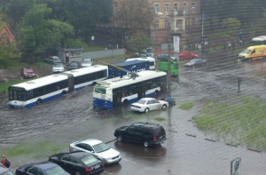 Напомним, из-за затопленных улиц в Риге было остановлено движение троллейбусов 3-го маршрута и трамваев 5-го маршрута, сообщает предприятие Rīgas satiksme.