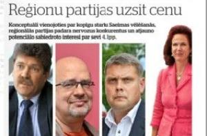Газета Diena пишет об участии в выборах объединения региональных партий. Хотя некоторые еще ведут переговоры с «Виенотибой». На второй странице Атис Климович хвалит немецкого канцлера Меркель, которая посетила бывший концлагерь Дахау и противопоставляет ей российского президента Путина, который ни в одном из лагерей ГУЛАГА не был и не покаялся за преступления перед другими народами. Еще в номере успокаивают, что цены на автогаз в будущем году не вырастут. Также пишут про рынок сувениров, опрашивая их продавцов и покупателей. Среди сувениров у нас больше всего изделий из янтаря и глины, но можно встретить и оригинальные вещи, пишет газета. А также корреспонденты увидели немало русских кукол - матрешек, наследии Российской империи. Газета выясняет, какие сувениры иностранцы больше покупают.