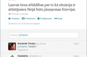 «В случае, если западные страны решат нанести по Сирии авиаудары, Латвия должна быть сдержанной в своей позиции», -заявил Пабрикс.