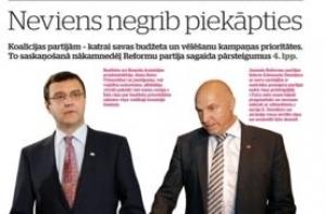 Газета Diena пишет о том, что у каждой партии правящей коалиции свои приоритеты бюджета и предвыборной компании и уступать никто не хочет. Начался предвыборный торг, указывает газета. На второй странице обозреватель Сандрис Точс критикует ультиматум Национального объединения правительству. Еще есть интервью с почетным консулом Латвии в Ливане, который объясняет, почему ливанцам так трудно получить латвийскую визу. Также сообщают о том, что из-за нехватки средств школы покупают только одну рабочую тетрадь и сами размножают ее при помощи копировальной техники. Оказывается, это запрещено, особо недовольны в издательстве, что эти тетради издаёт.