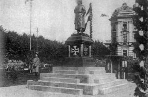 3 сентября 1917 года года немцы заняли Ригу. В тот же день в центре города был сооружен памятник - фигура германского солдата в полном обмундировании с винтовкой через плечо. На постаменте было написано «Немецкой армии. Фонд поддержки немецких солдат. 3 сентября 1918 года». Скульптура официально называлась «Железный воин», хотя памятник был из дерева, за что прозван в народе «деревянным Фрицем».