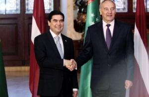 11 сентября 2012 года в Латвию с двухдневным официальным визитом прибыл президент Туркмении Гурбангулы Бердымухамедов. Он подарил президенту Берзиньшу ковер ручной работы. Со своей стороны Берзиньш вручил президенту Туркменистана акварельное изображение Вецриги работы Яниса Бректе. Во время пресс-конференции Андрис Берзиньш заявил:«Я высоко ценю визит в Латвию турецкого президента и турецкой делегации».