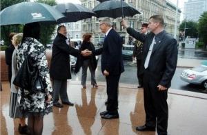 В тот же день президент Затлерс ознакомился с Памятником Свободы в Риге, впервые зайдя внутрь его.