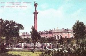 15 сентября 1817 года - в день коронации российского императора Александра I - в Риге возле Рижского замка была открыта колонна в честь победы над Наполеоном. Монумент был изготовлен в Петербурге. Каменотесом был Самсон Самсонов – автор петербургского Александрийского столпа, архитектором – Джакомо Кваренги. На открытие прибыл Барклай-де-Толли. Колонна украшала Ригу до начала Первой мировой войны.