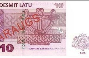 В тот же день Банк Латвии выпустил в обращение немного видоизмененные 10-латовые банкноты с элементами защиты против подделки. На них указан год выпуска - 2008 и стоит подпись президента Банка Латвии Илмара Римшевича .