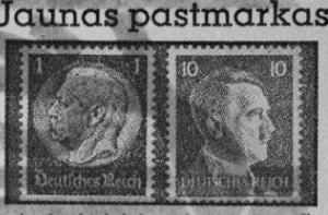 1 октября 1941 года были изъяты из обращения все ходившие до этого знаки почтовой оплаты и для почтовых отправлений стали годны только почтовые марки почты Германии. Газета «Тевия» сообщила о выходе марок с изображениями Гинденбурга и Гитлера.
