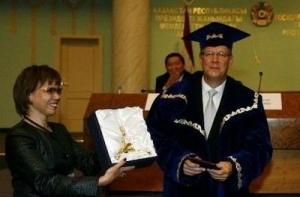 В тот же день находившемуся в Астане с визитом Валдису Затлерсу был вручен диплом почетного доктора Академии государственного управления Казахстана.