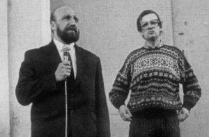 6 октября 1990 года на 3-м съезде Народного фронта Латвии его председателем был избран Ромуалдас Ражукас (на фото - справа). Съезд принял новую программу, где главной целью было названо восстановление независимости Латвии.