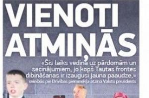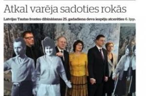 А газета Latvijas Avīze призывает хранить свято свободную Латвию, вспоминает Народный фронт, его идеалы, храбрость и силу духа. И подробно рассказывает о праздновании 25-летия НФЛ, и о впечатлениях ветеранов и молодежи. Об этом юбилее рассуждает писательница Анда Лице, призывая вспомнить, что за эти 25 лет потеряли. Это, как можно понять, идеалы. А министр обороны Артис Пабрикс разъясняет, зачем нужна преамбула к Конституции. Очень необходима, и даже уже запоздала. А известный художник Агрис Лиепиньш рассказывает притчу, которая должна доказать ненужность выдачи видов на жительство. Ещё в номере есть интервью с новым послом Латвии в Москве Астрой Курме. Несмотря на запугивания со стороны журналистов газеты, посол России не боится, так как считает, что Латвия сидит на диване Евросоюза под крышей НАТО, она же зонтик. Кроме того, журналисты интересуются, следит ли посольство за российскими историками Дюковым и Симиндеем, на что посол отвечает, что есть специалисты, у которых это получается лучше. Ну, и про культурно-экономические связи тоже говорит.