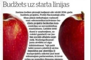 Газета Diena напоминает, что сегодня Сейм в первом чтении рассматривает проект бюджета, первый, составленный в евро. Но радости от него мало, ведь он не рассчитан на экономический рывок, указывает газета. На третьей странице депутат Сейма Элина Силиня рассказывает о несправедливости налога на микропредприятия. Также пишут о планируемых новых поправках к Закону о гражданстве, чтобы облегчить получение двойного гражданства. А также о том, что такое покупка, дружественная природе. Та, которая не сделана, объясняют экологи. Кроме того, жалуются, что женщины не используют возможность пройти бесплатное обследование с целью профилактики рака груди. За это платит государство. Поэтому Центр государственного языка запретил рассылать приглашения на обследование на русском языке, пишет газета.