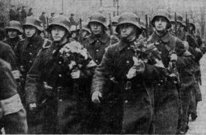 18 октября 1941 года в Риге на Домской площади прошел парад латышского добровольного полицейского соединения, отправляющегося на восточный фронт. Перед этим состоялось торжественное богослужение.