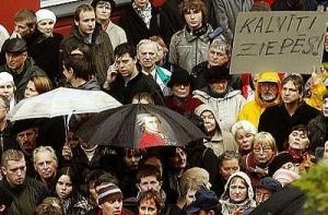 18 октября 2007 года несмотря на дождь, утром около здания Сейма Латвии перед началом пленарного заседания парламента собралось более 2000 человек, протестующих против ситуации в стране и требующих отставки премьер-министра Айгара Калвитиса. Это считается началом так называемой революции зонтиков.