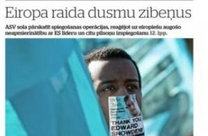 Газета Diena пишет о том, что Европа показывает Америке сердитые зубы. Обидевшись на американский шпионаж за своими лидерами. И хотя американцы пообещали шпионить меньше, доверие ЕС к США утрачено. Еще в номере пишут об изменениях на государственном телевидении. Там появились новые программы и вернулся комментатор Карлис Стрейпс. Газета отмечает, что на телевидении стало больше аналитики, но качество не всегда на высоте. А метеорологи отмечают, что минувшая буря была самой сильной с 2008 года. Газета продолжает конкурс на лучшую медицинскую сестру и рассказывает о старшей сестре Мадонской больницы. Также пишут, что министр юстиции Янис Борданс не только исполняет обязанности министра культуры, но еще,будучи членом Национального объединения, работает в обществе «Демократические патриоты», которое в конце года может стать партией. Это вызывает недовольство в Национальном объединении и вопросы о политическом доверии министру.