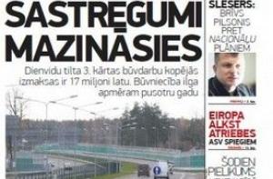Газета Neatkarīgā сообщает, что строительство третьей очередь Южного моста стоило 17 миллионов латов и длилось полтора года. В результате бутылочное горлышко расширилось и пробки уменьшаться. В номере есть интервью с бывшим министром и депутатом Айнарсом Шлесерсом. Он рассказывает, чем сейчас занимается и даёт прогнозы изменений политического пейзажа. Также пишут о политическом будущем бывшего госконтролера Ингуны Судрабы, оно неясно, но может быть связано с региональными партиями. Еще рассказывают о последствиях урагана - он повалил знаменитых вентспилсских коров.
